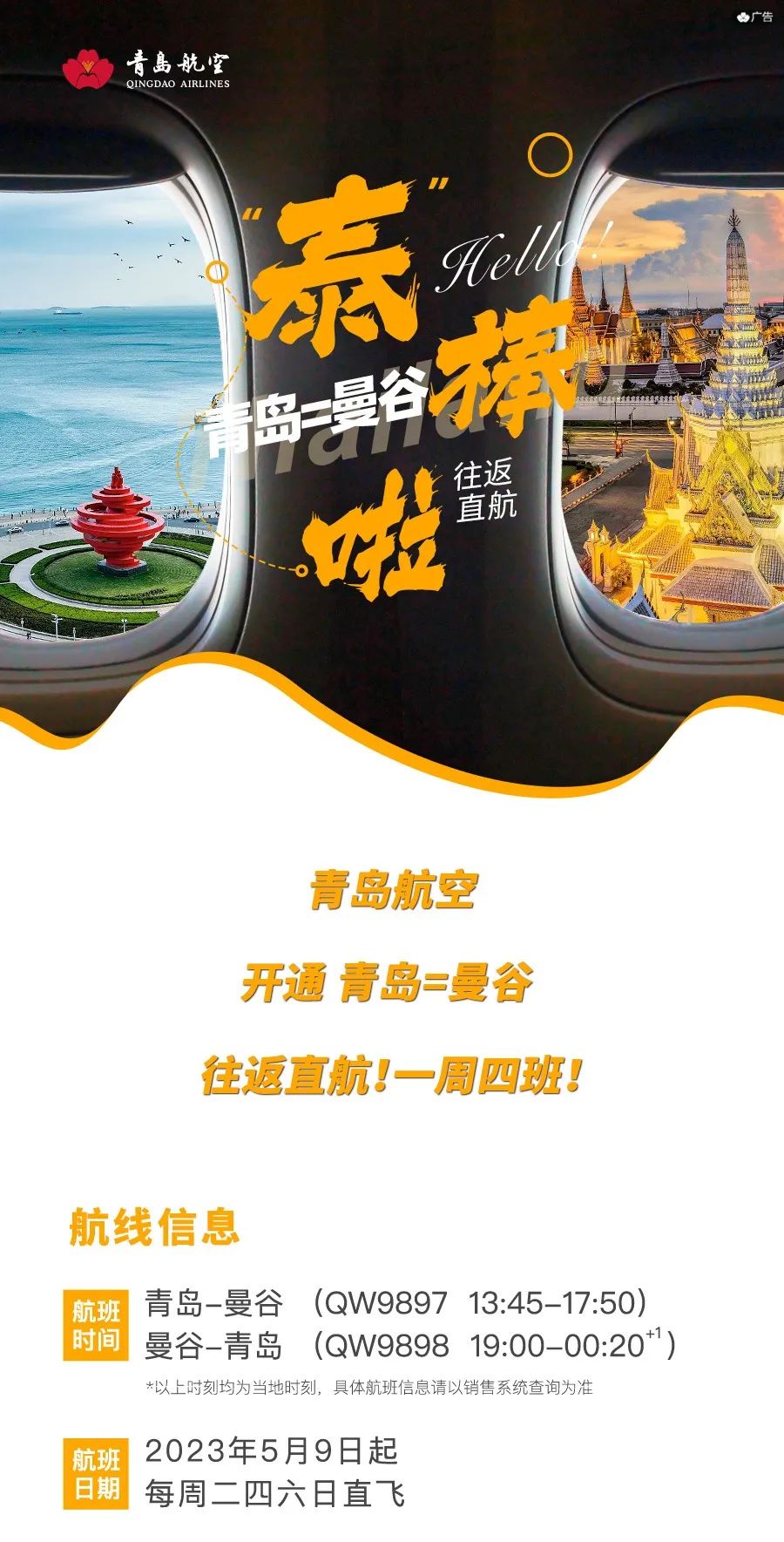 中國(guó)民航網(wǎng):青島航空新開(kāi)青島—曼谷直飛航線!