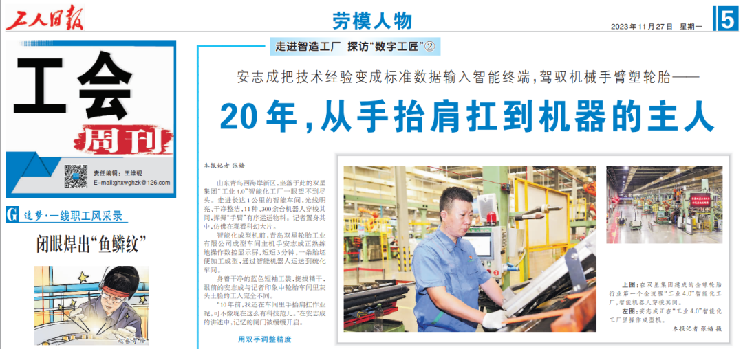 工人日報(bào):走進(jìn)智造工廠,探訪雙星集團(tuán)“數(shù)字工匠”安志成