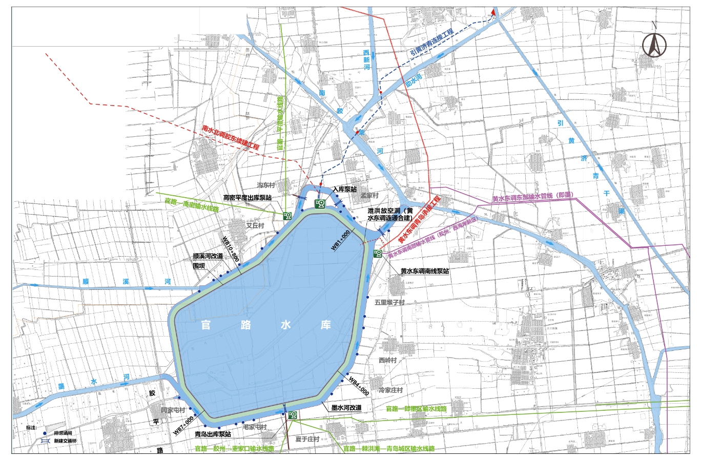 官路水庫工程是山東省規劃的南水北調東線工程的重要調蓄工程,是國家大水網的重要節點。該工程被納入了國家《“十四五”水安全保障規劃》《淮河流域及山東半島水資源綜合規劃》《山東省水安全保障總體規劃》《山東省“十四五”水利發展規劃》《山東現代水網建設規劃》《山東省黃河流域生態保護和高質量發展規劃》等。工程建成后將成為青島市的主要水源地,可有效解決青島市水資源嚴重短缺對社會高質量發展造成的影響,改變目前棘洪灘水庫“單渠單庫”的客水調蓄模式,進一步構筑起青島市“多渠輸送、多庫調蓄”客水調引體系,大力提升青島市乃至膠東半島的水資源統籌調配、供水保障和戰略儲備能力。